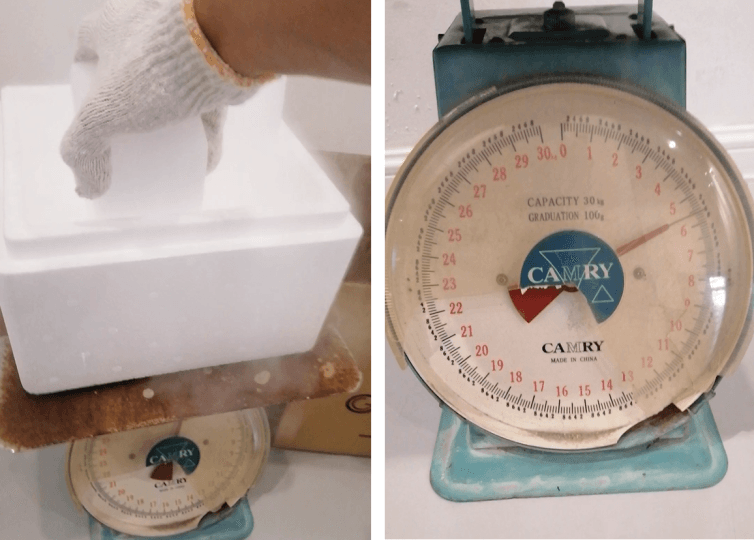 2. Assemble 5.5kg of dry ice inside the Styrofoam Box.