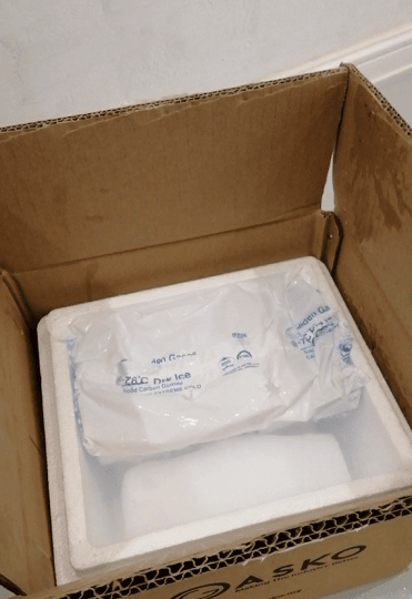 3. Secure the dry ice using the GASKO “Dry Ice in the Box” packing to minimize sublimation.