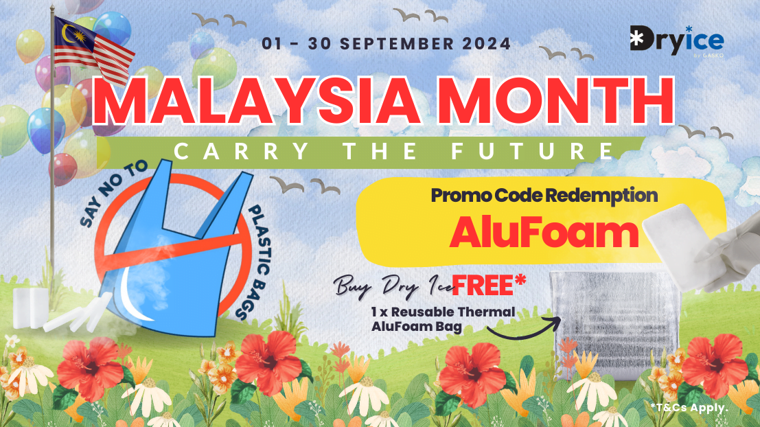 This September, we’re saying NO to plastic bags and YES to a greener future for “Tanah Airku”! Join us in celebrating Malaysia Month by claiming a FREE reusable thermal AluFoam bag with every dry ice package purchase.