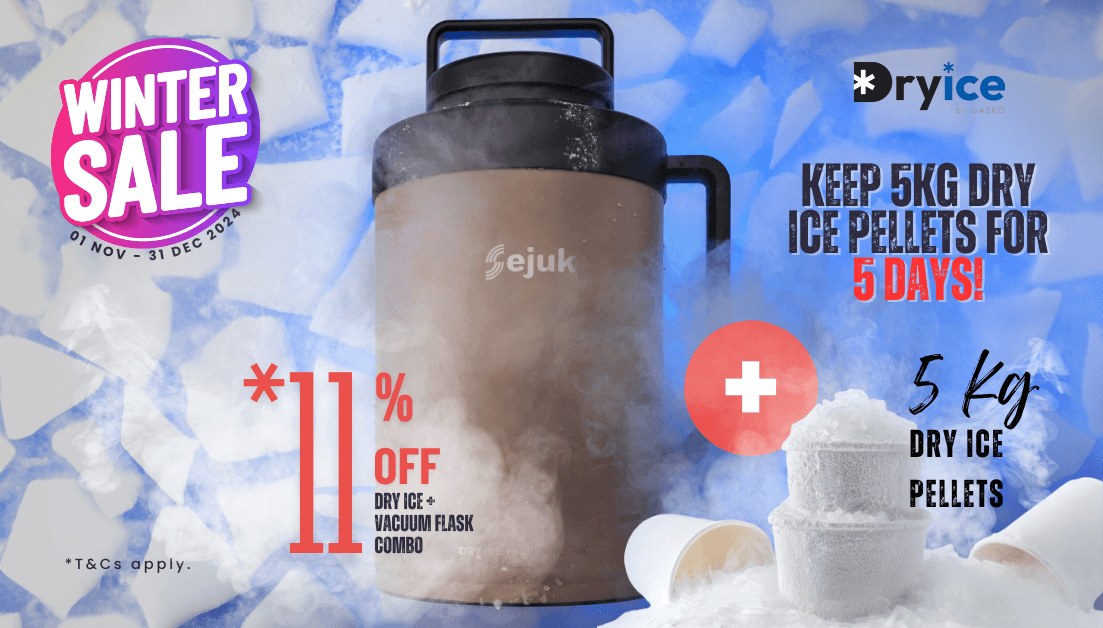 Enjoy 11% off on every set purchased of 5kg Dry Ice and Vacuum Flask during our Winter Sales Special running from November 01 to December 31, 2024. This offer is the perfect opportunity to stock up on essential cooling solutions for the holiday season.