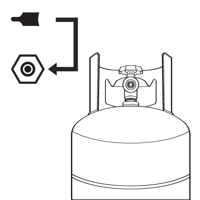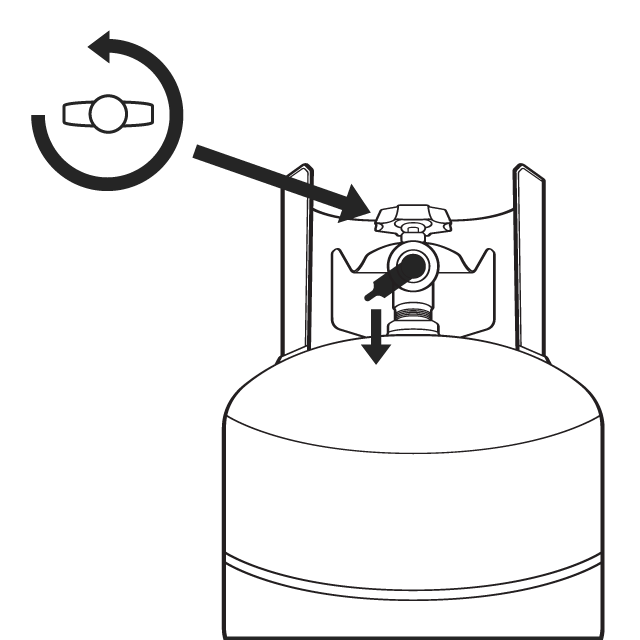 Turn the green valve open. Push the nozzle down to release gas.